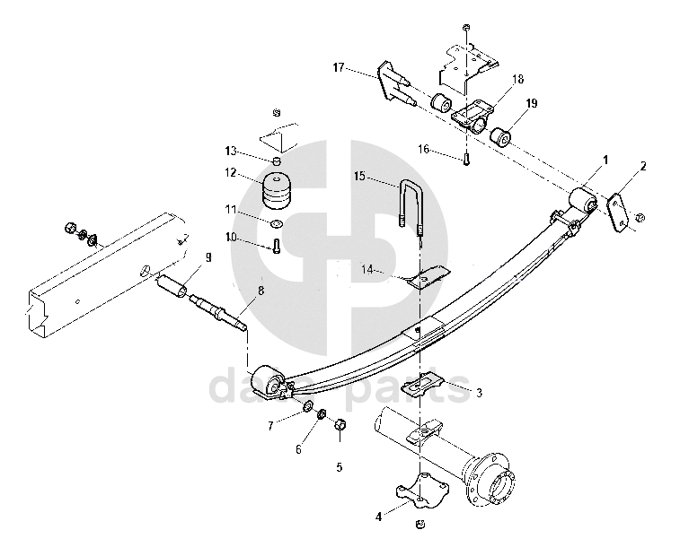 Ось переднего конца рессоры