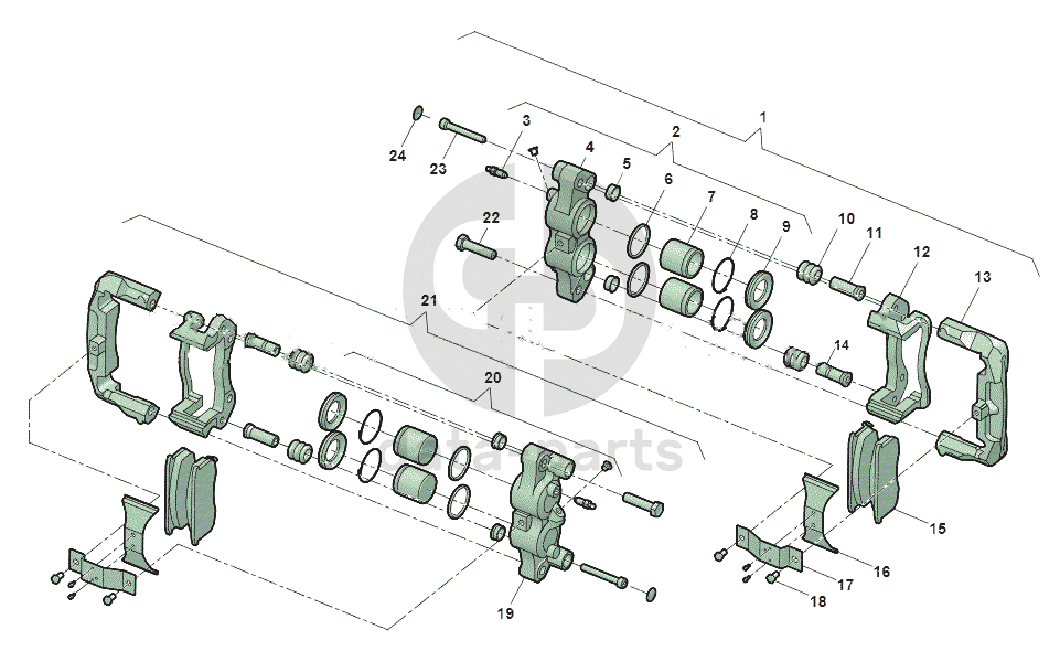 Блок цилиндров переднего тормоза с поршнями правый