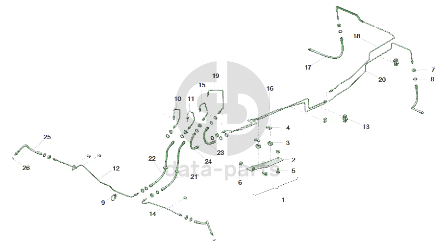 Трубка верхнего переднего шланга к левому переднему тормозу