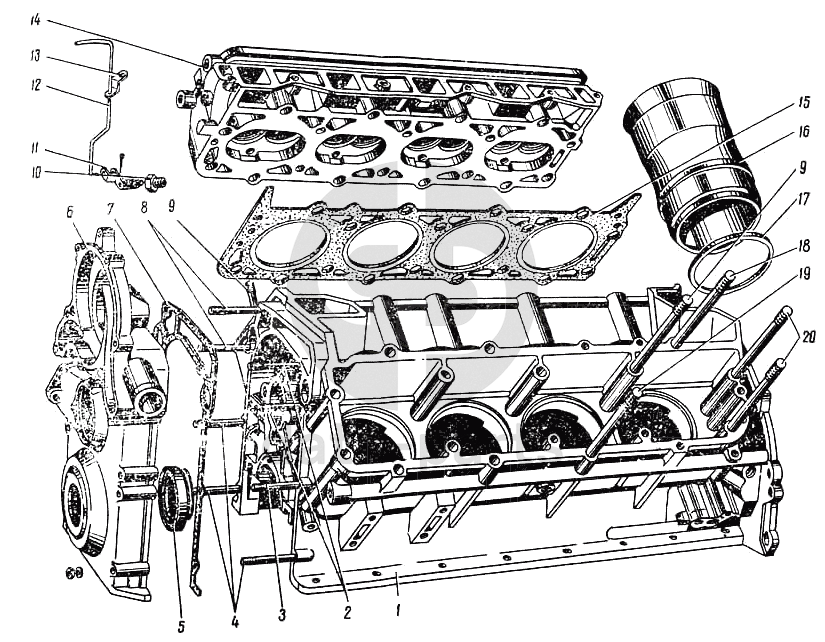 Блок цилиндров и головки блока цилиндров двигателя ПАЗ-672М