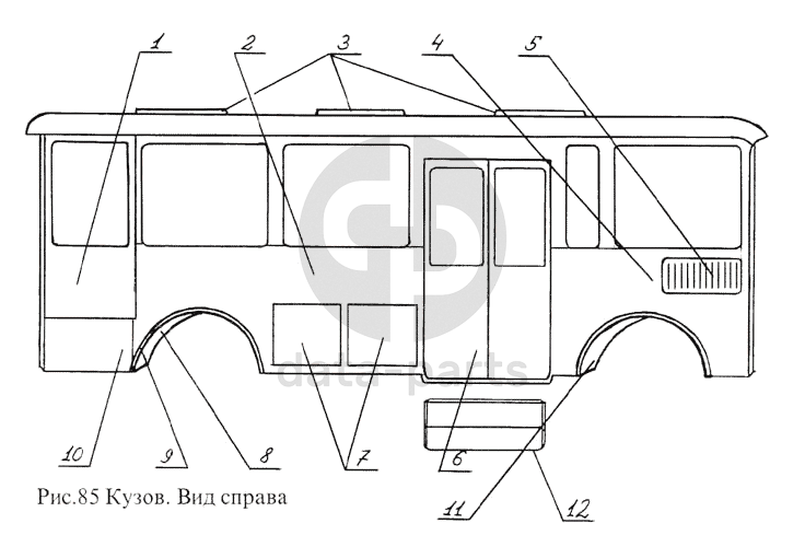 Кузов. Вид справа ПАЗ-3205