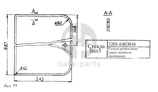Стекло рамки окна двери водителя подвижное ПАЗ-3205