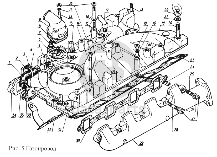 Штуцер К3/8 соединительного шланга перепускного канала водяной рубашки выходной
