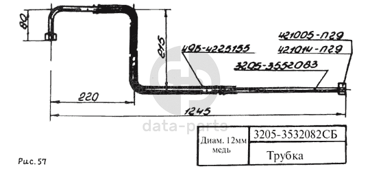 Трубка диаметром 12 мм медная с гайками, от муфты к регулятору тормозных сил