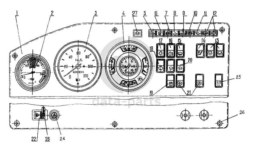 Контрольная лампа "падение давления воздуха в приводе дверей"