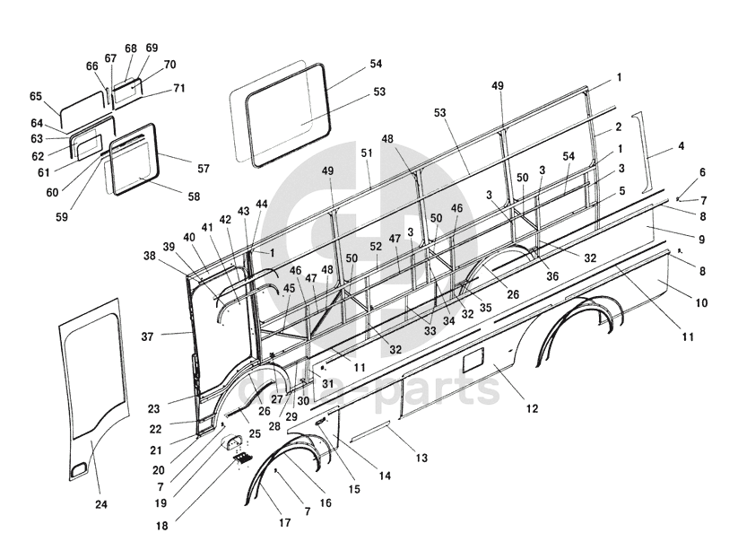 Боковина кузова левая с остеклением ПАЗ-32053