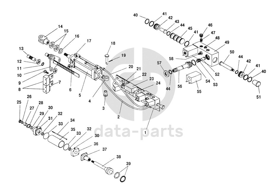 Механизм открывания пассажирской двери с электропневмоклапаном и трубопроводами ПАЗ-32053