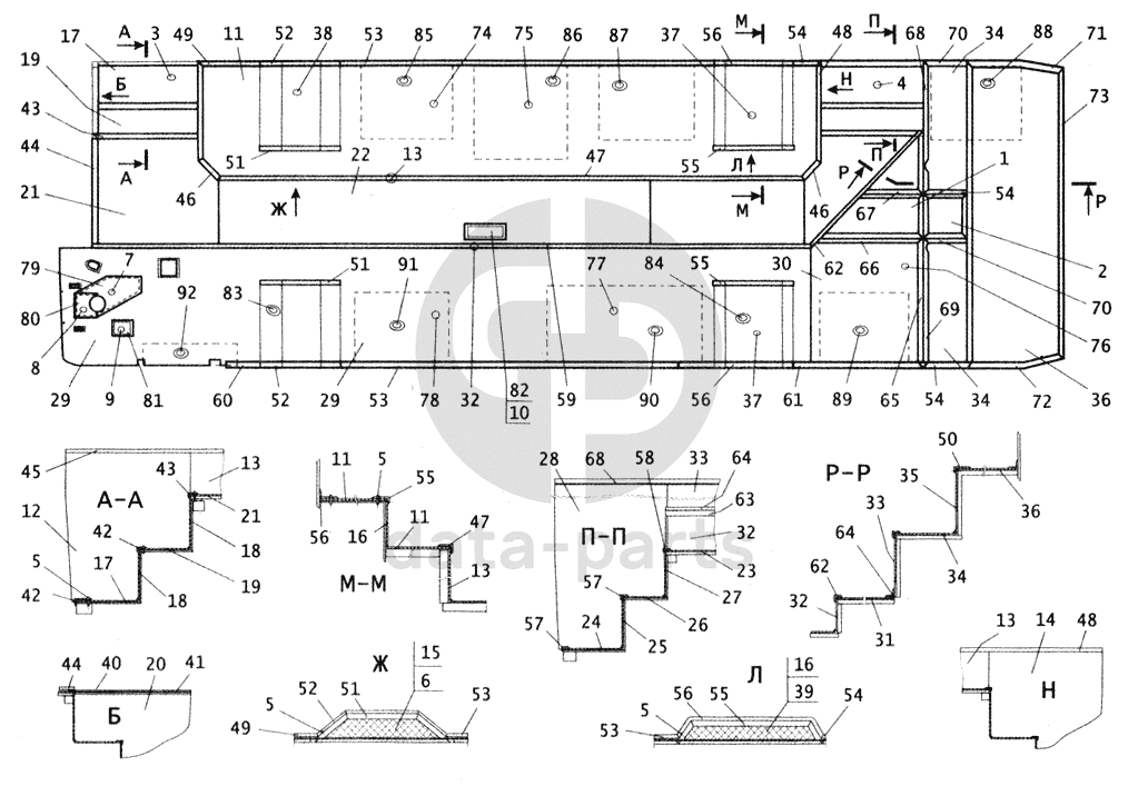 Коврики пола и кожухи арок колес автобуса с надстройками пола салона ПАЗ-4230