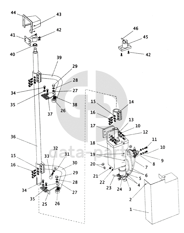 Механизм открывания одностворчатой пассажирской двери с трубопроводами ПАЗ-4230