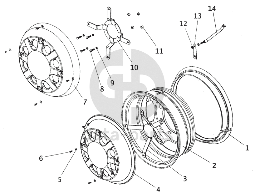 Кронштейн крепления декоративного колпака заднего колеса с гайками в сборе