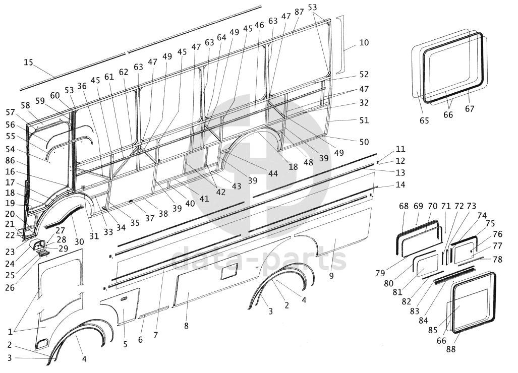 Боковина кузова автобуса ПАЗ3205307 левая с остеклением ПАЗ-4234