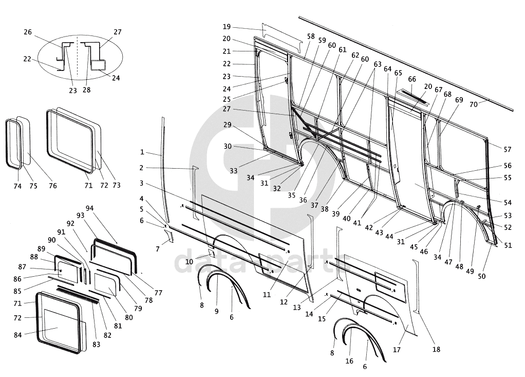 Боковина кузова автобуса ПАЗ3205307 правая с остеклением ПАЗ-4234