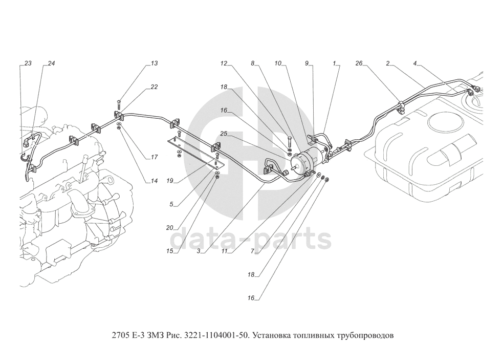 3221-1104001-50. Установка топливных трубопроводов ГАЗ-2705 (доп. с дв. ЗМЗ Е-3)