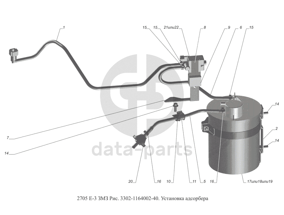 3302-1164002-40. Установка адсорбера ГАЗ-2705 (доп. с дв. ЗМЗ Е-3)