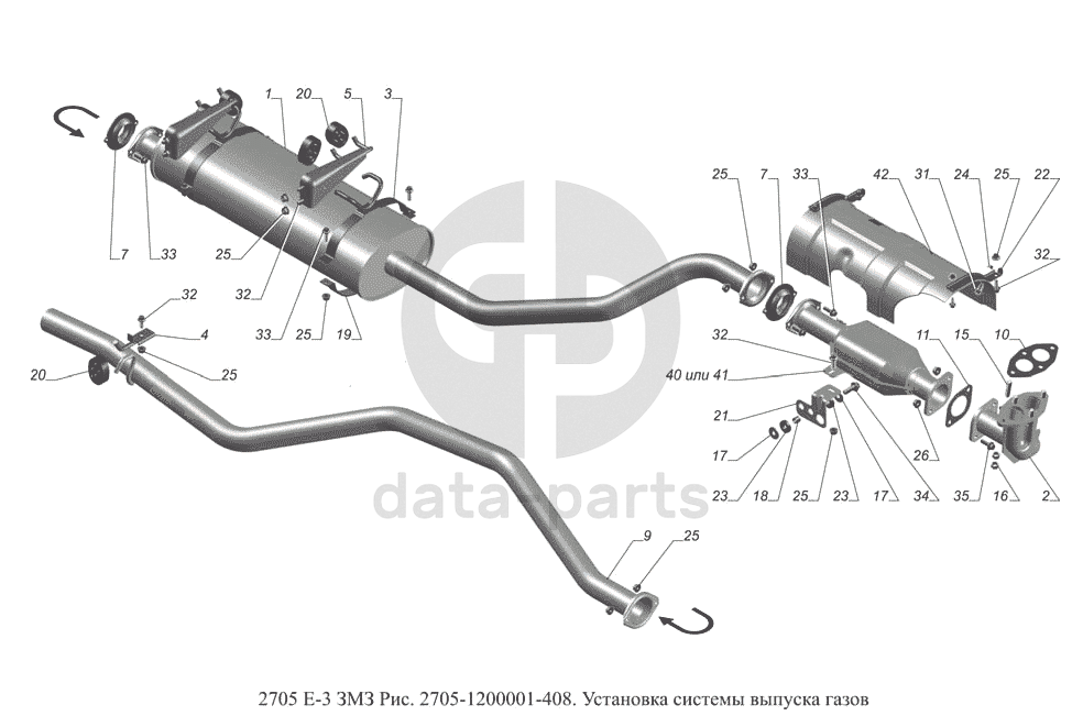 2705-1200001-408. Установка системы выпуска газов ГАЗ-2705 (доп. с дв. ЗМЗ Е-3)