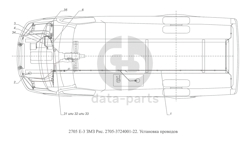 2705-3724001-22. Установка проводов ГАЗ-2705 (доп. с дв. ЗМЗ Е-3)