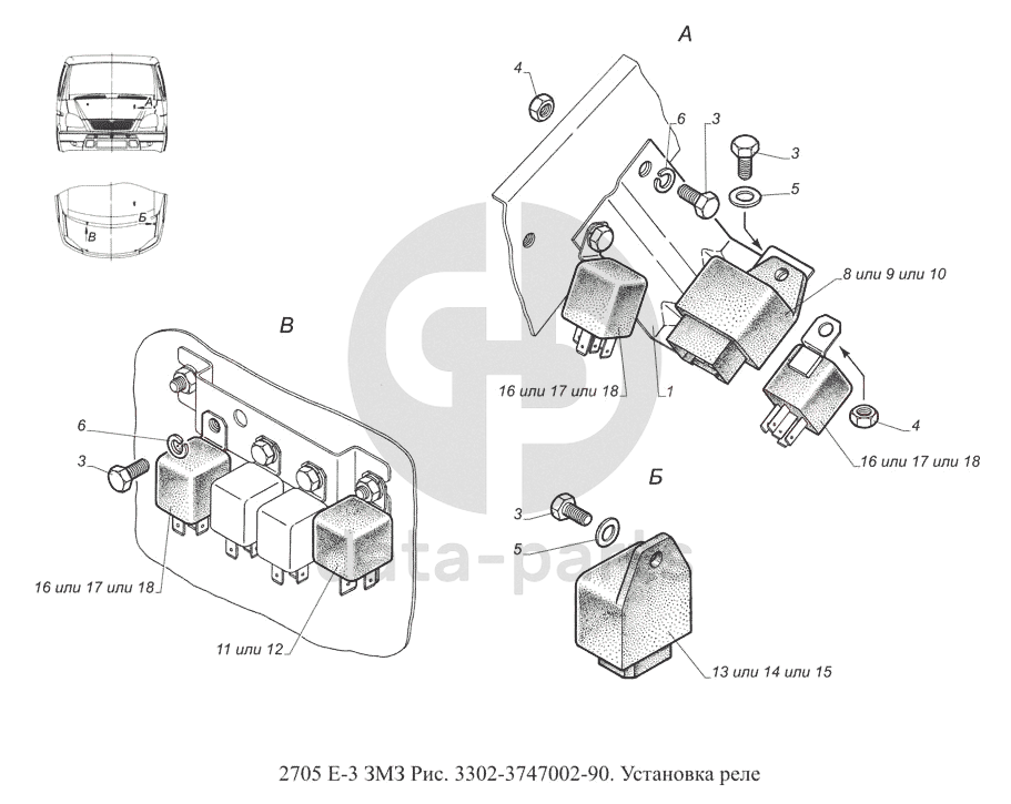 3302-3747002-90. Установка реле ГАЗ-2705 (доп. с дв. ЗМЗ Е-3)
