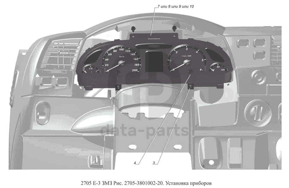 2705-3801002-20. Установка приборов ГАЗ-2705 (доп. с дв. ЗМЗ Е-3)