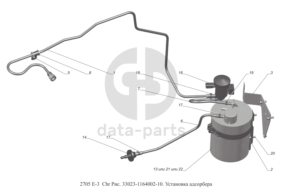 33023-1164002 -10. Установка адсорбера ГАЗ-2705 (доп. с дв. Chr Е-3)