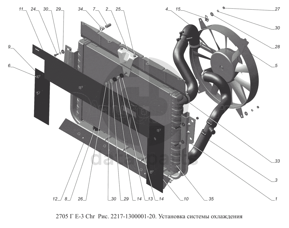 2217-1300001-20. Установка системы охлаждения ГАЗ-2705 (доп. с дв. Chr Е-3)