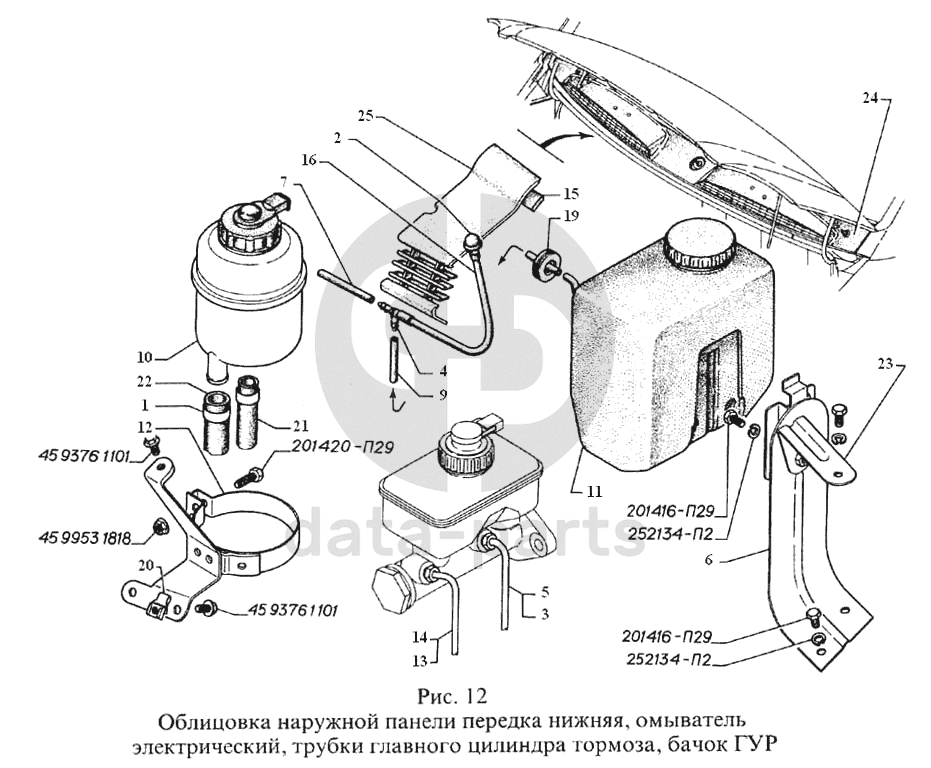 Облицовка наружной панели передка нижняя, омыватель электрический, трубки главного цилиндра тормоза, бачок ГУР ГАЗель, Соболь
