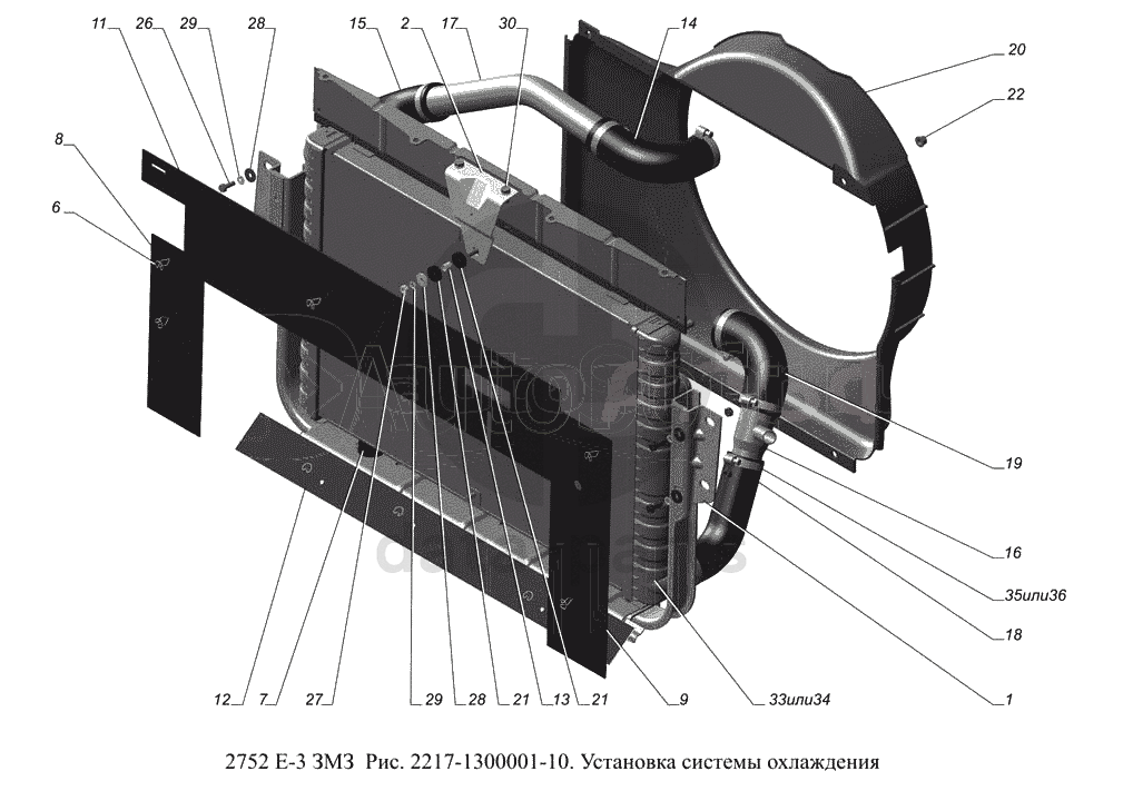 2217-1300001-10. Установка системы охлаждения ГАЗ-2752 (доп. с дв. ЗМЗ Е 3)