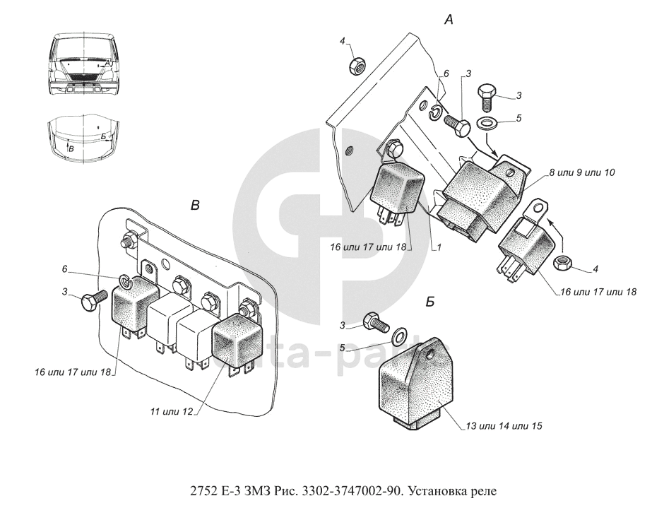 3302-3747002-90. Установка реле ГАЗ-2752 (доп. с дв. ЗМЗ Е 3)