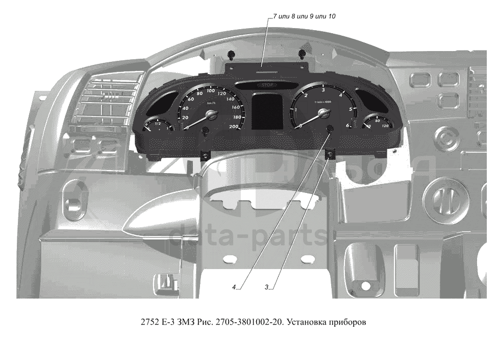 2705-3801002-20. Установка приборов ГАЗ-2752 (доп. с дв. ЗМЗ Е 3)