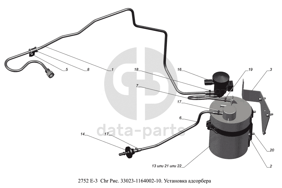 33023-1164002 -10. Установка адсорбера ГАЗ-2752 (доп. с дв. Chr Е 3)
