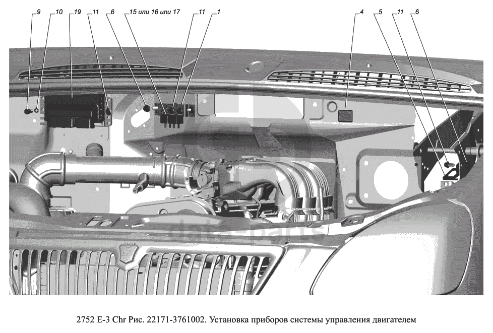 22171-3761002.Установка приборов системы управления двигателем ГАЗ-2752 (доп. с дв. Chr Е 3)