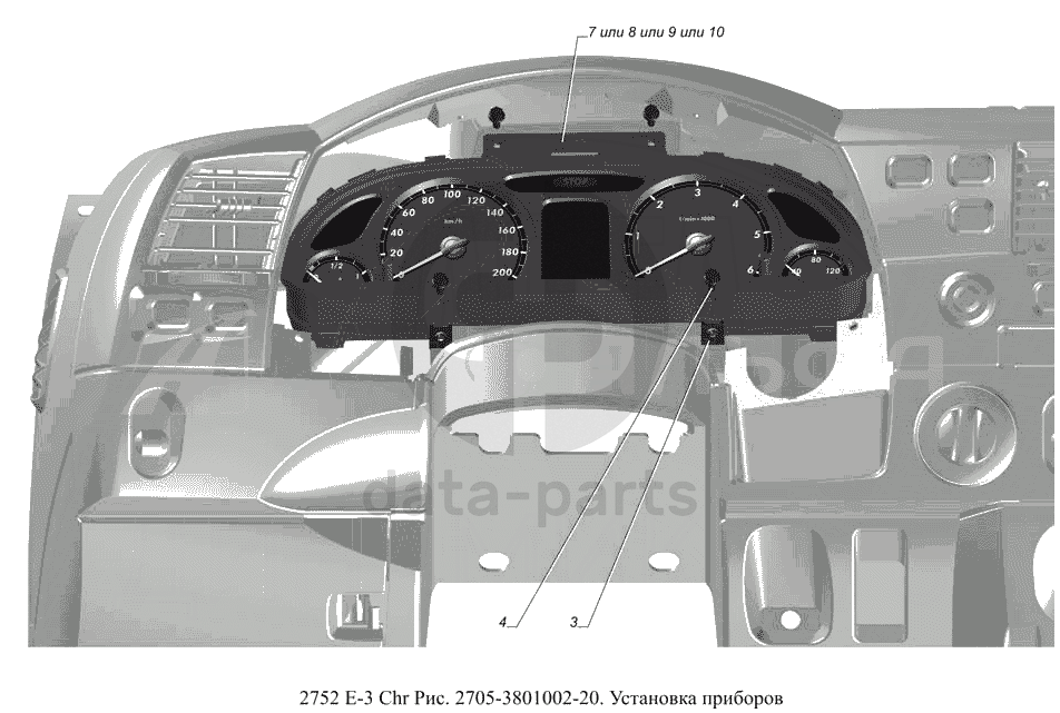 2705-3801002-20. Установка приборов ГАЗ-2752 (доп. с дв. Chr Е 3)