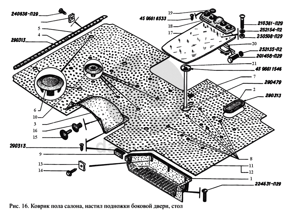 Коврик пола салона, настил подножки боковой двери, стол ГАЗ-3221