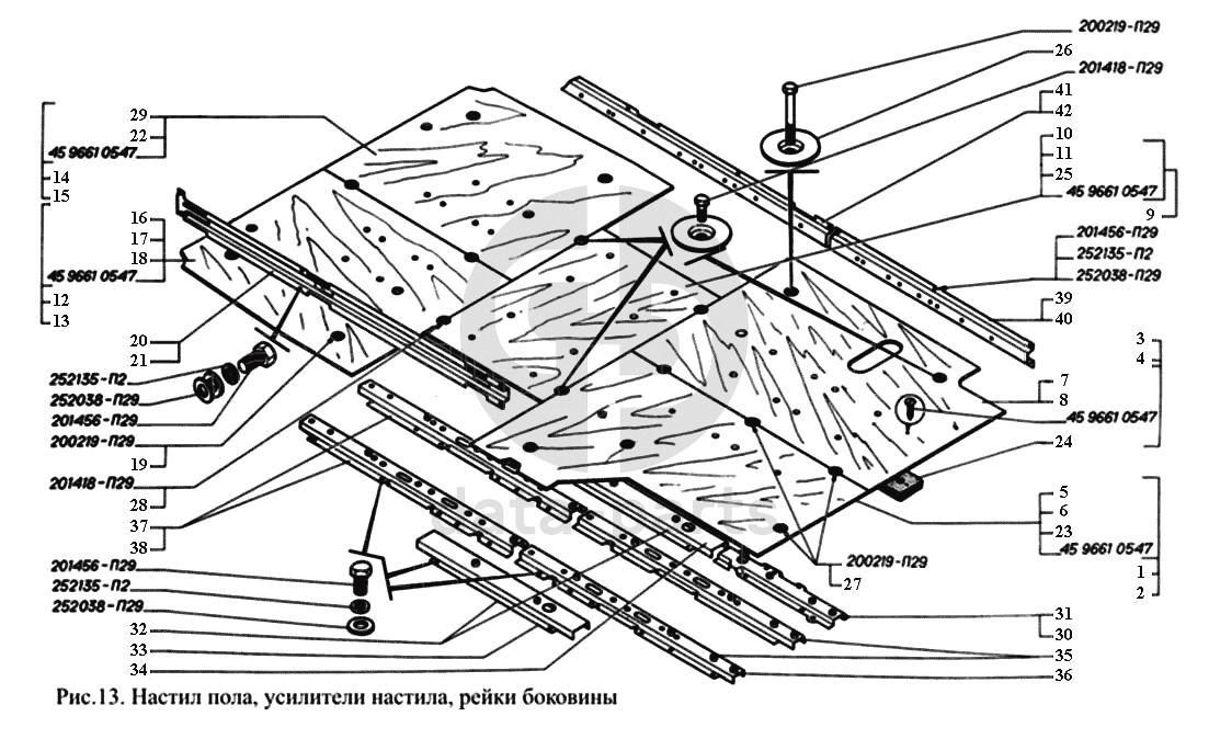 Настил пола, усилители настила, рейки боковины ГАЗ-3221