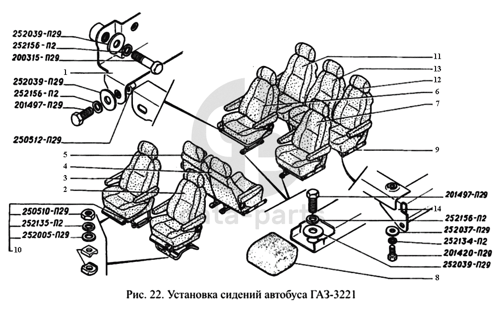 Установка сидений автобуса ГАЗ-3221 ГАЗ-3221