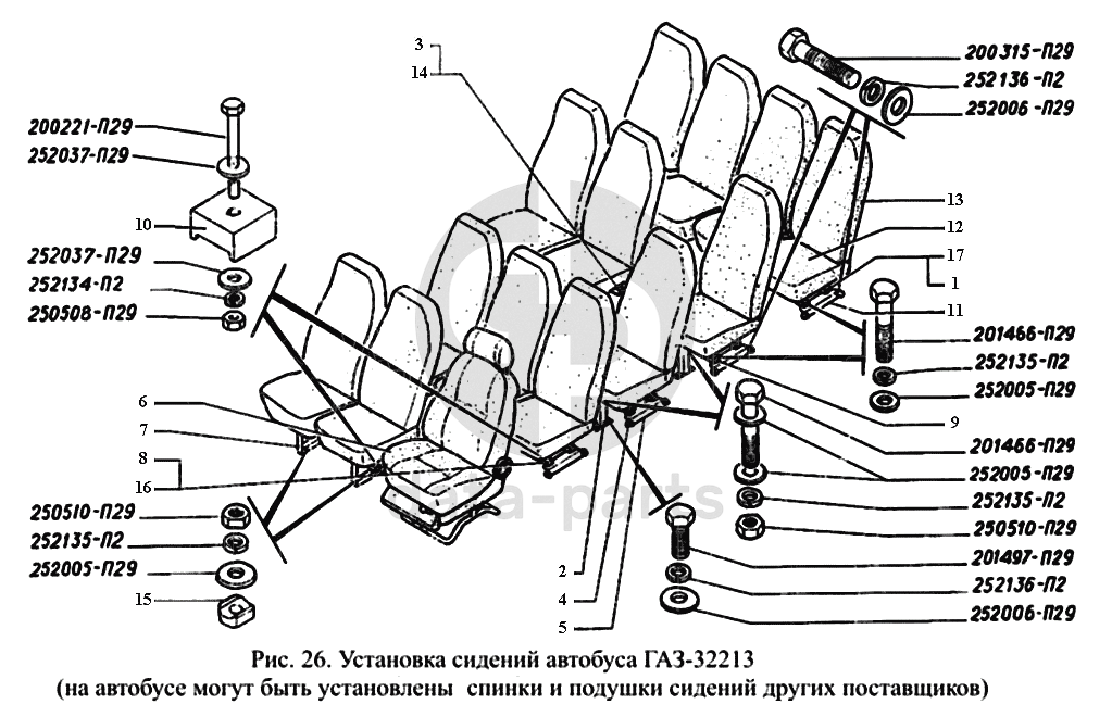 Установка сидений автобуса ГАЗ-32213 (на автобусе могут быть установлены спинки и подушки сидений других поставщиков) ГАЗ-3221