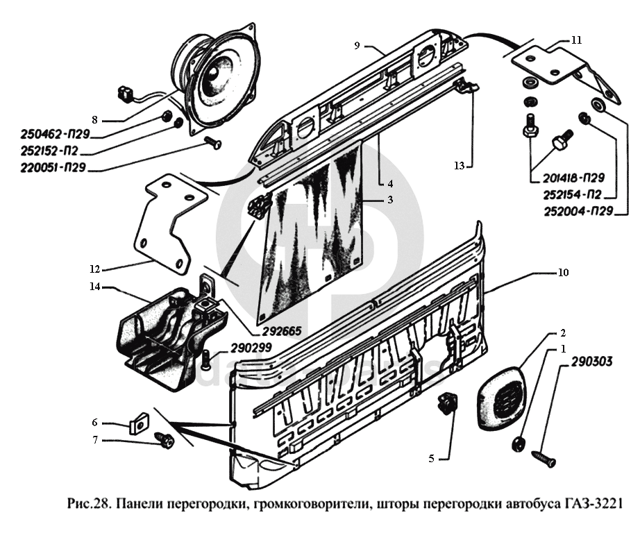 Панели перегородки, громкоговорттели, шторы перегородки автобуса ГАЗ-3221 ГАЗ-3221