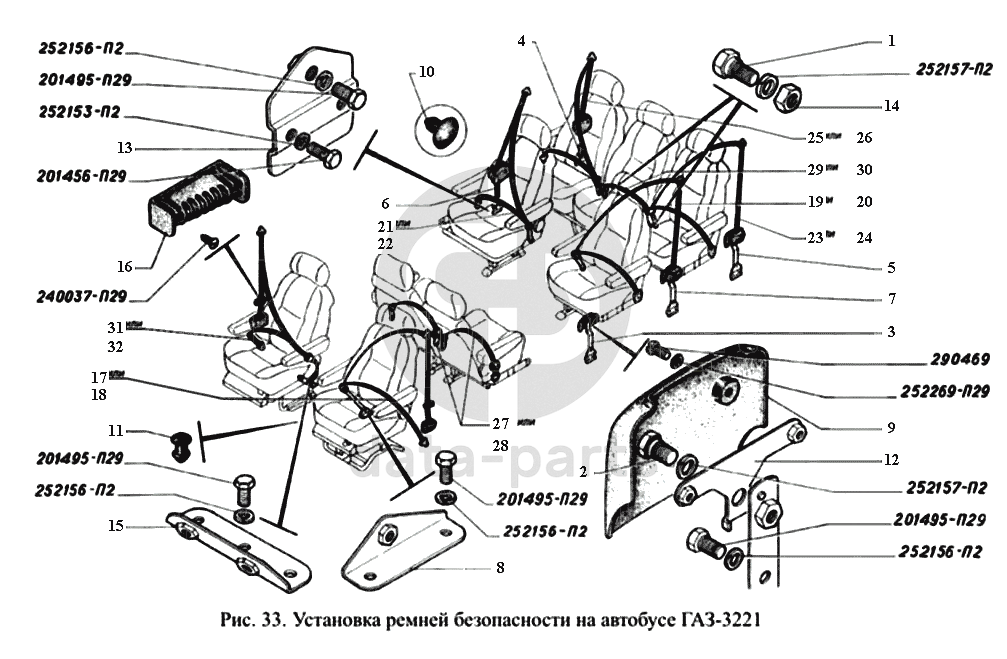 Установка ремней безопасности на автобусе ГАЗ-3221 ГАЗ-3221