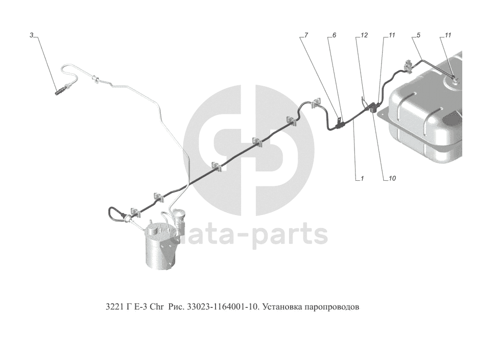 33023-1164001-10. Установка паропроводов ГАЗ-3221 (доп. с дв. Chr Е-3)