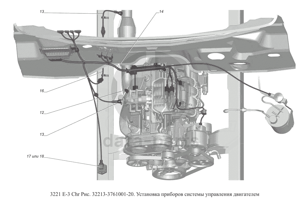 32213-3761001-20.Установка приборов системы управления двигателем ГАЗ-3221 (доп. с дв. Chr Е-3)