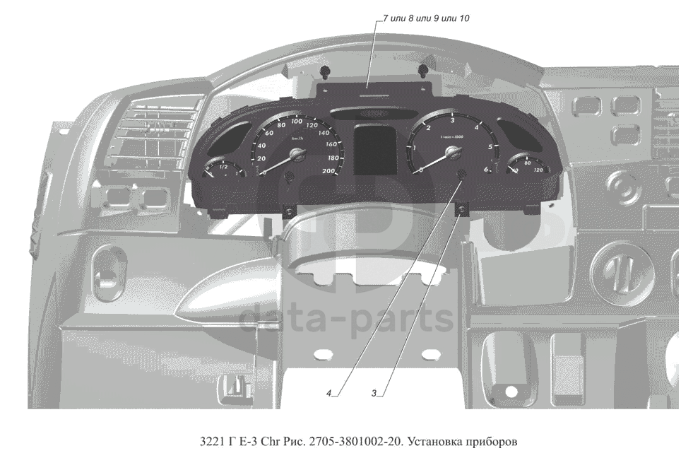 2705-3801002-20. Установка приборов ГАЗ-3221 (доп. с дв. Chr Е-3)