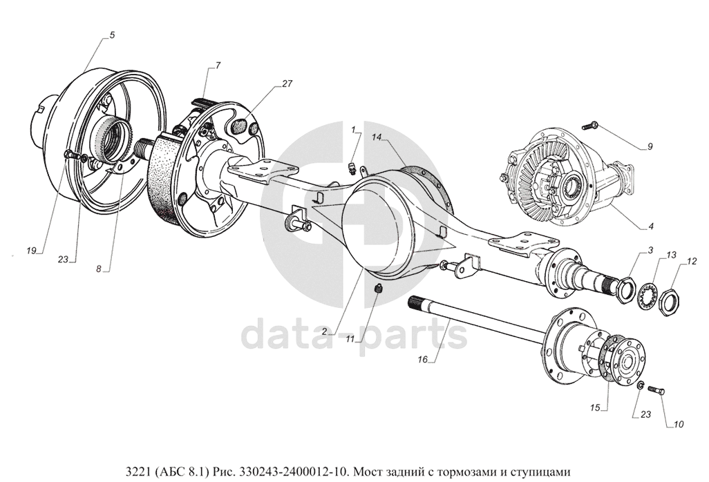 330243-2400012-10. Мост задний с тормозами и ступицами ГАЗ-3221 (Уст. АБС 8.1)
