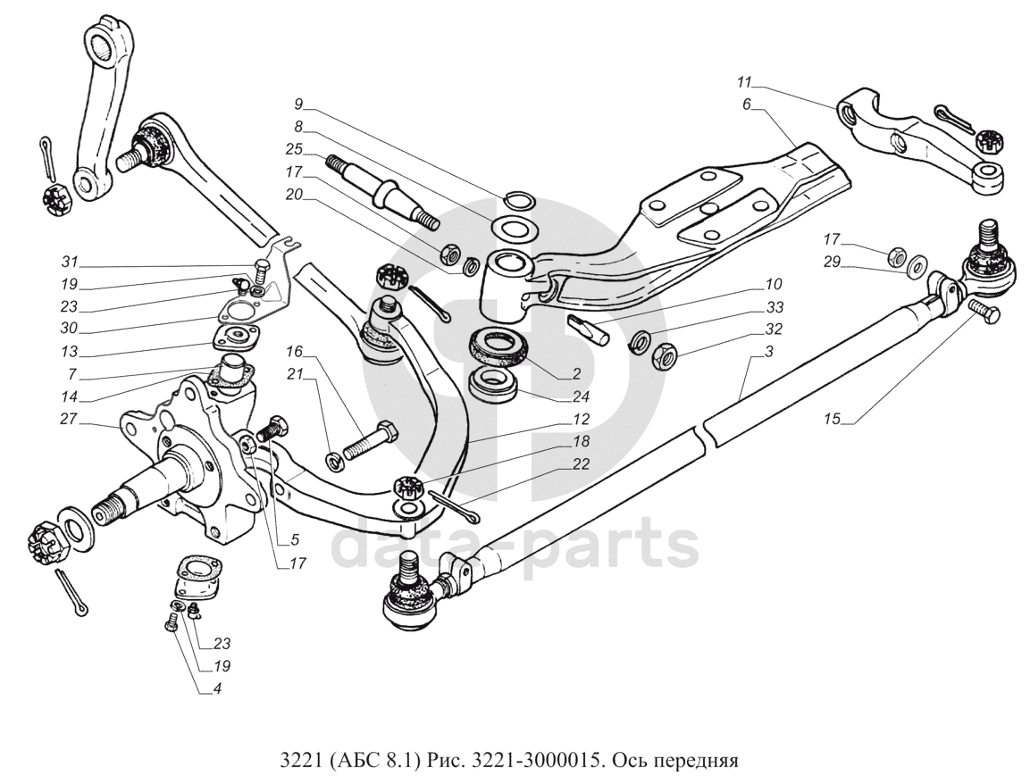 3221-3000015. Ось передняя ГАЗ-3221 (Уст. АБС 8.1)