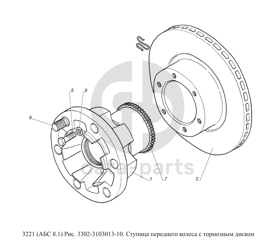 3302-3103013-10. Ступица переднего колеса с тормозным диском ГАЗ-3221 (Уст. АБС 8.1)