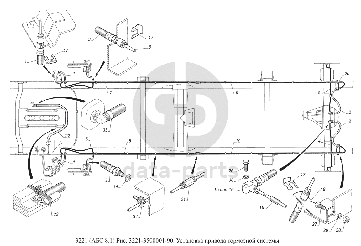3221-3500001-90. Установка привода тормозной системы ГАЗ-3221 (Уст. АБС 8.1)