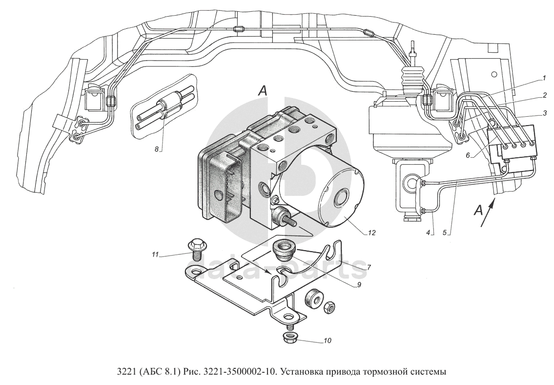 3221-3500002-10. Установка привода тормозной системы ГАЗ-3221 (Уст. АБС 8.1)