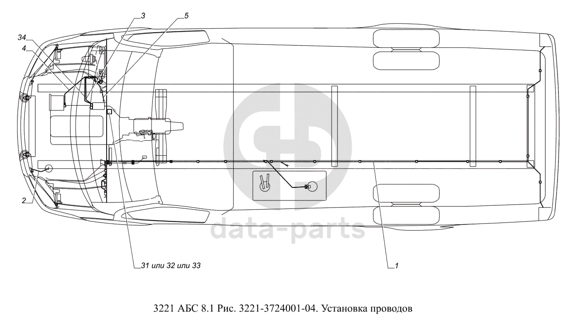 3221-3724001-04. Установка проводов ГАЗ-3221 (Уст. АБС 8.1)