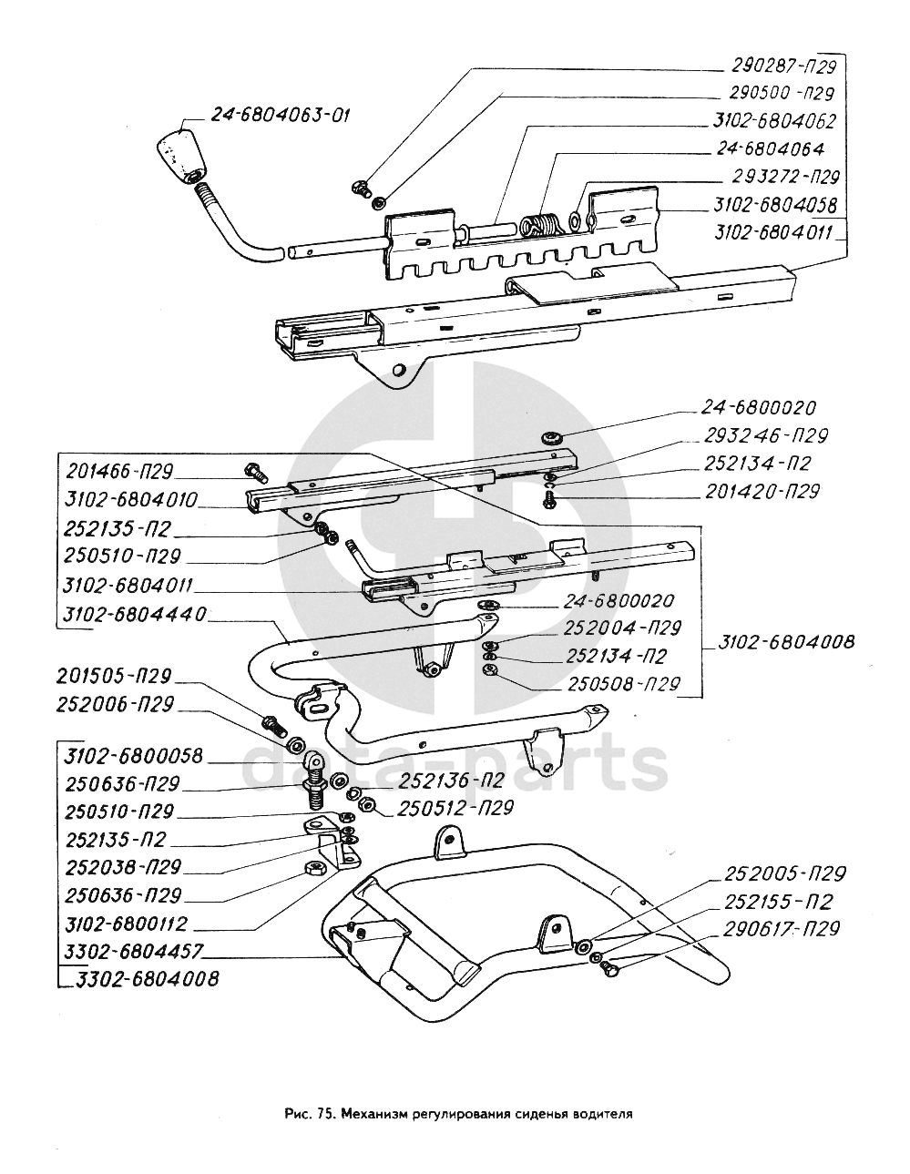Механизм регулирования сиденья водителя ГАЗ-3302 (ГАЗель)