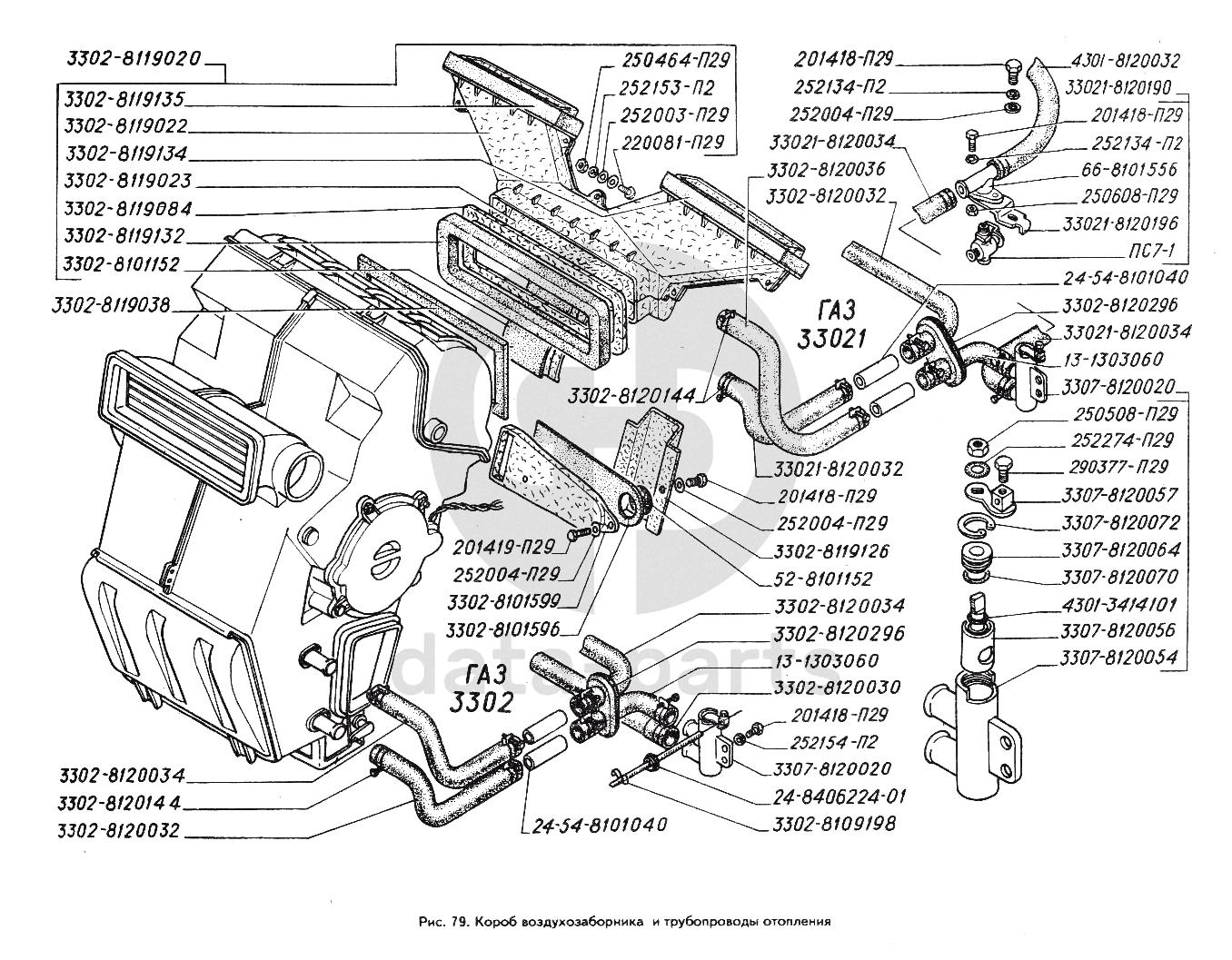 Короб воздухозаборника и трубопроводы отопления ГАЗ-3302 (ГАЗель)