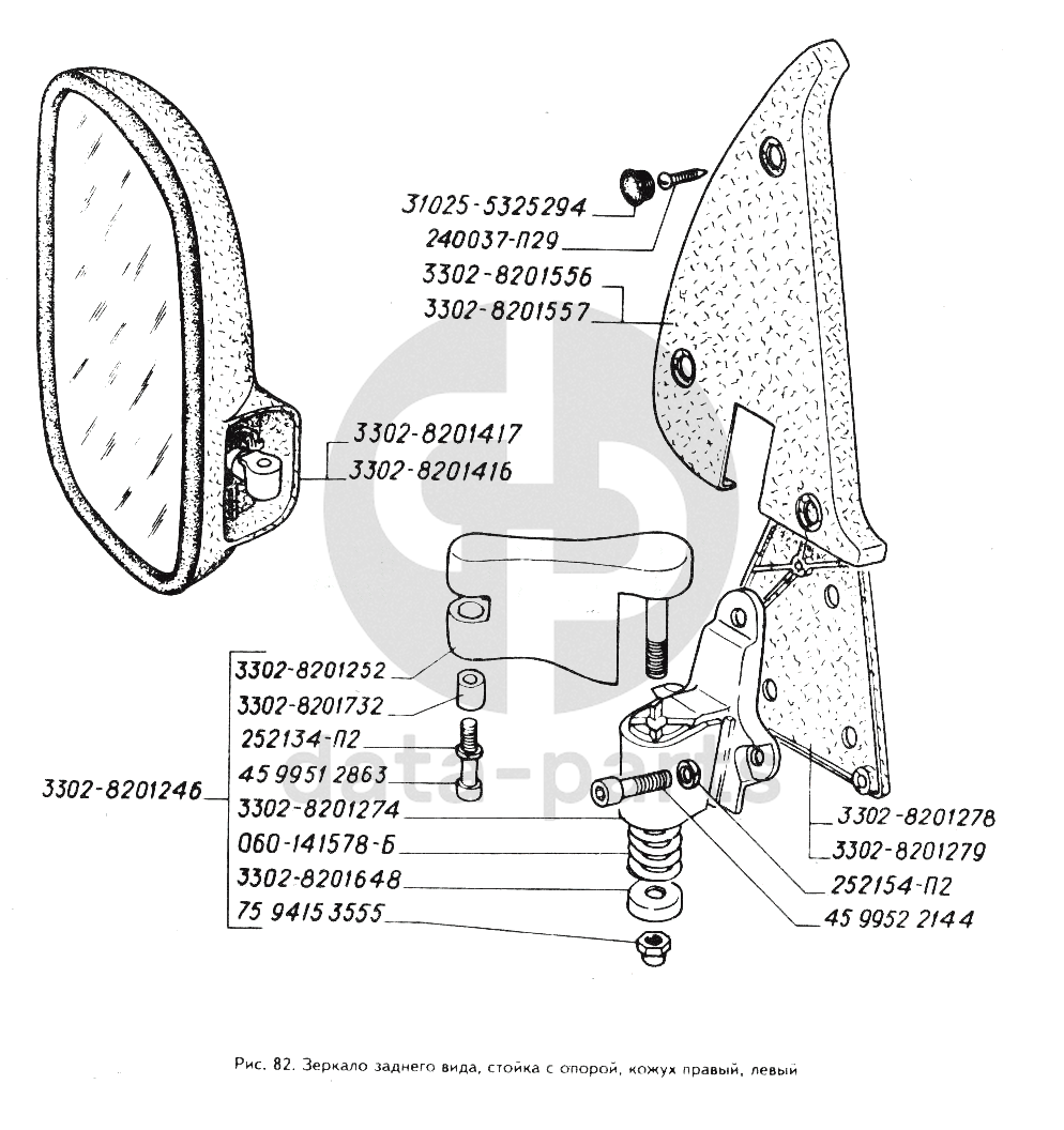 Зеркало заднего вида, стойка с опорой, кожух правый, левый ГАЗ-3302 (ГАЗель)