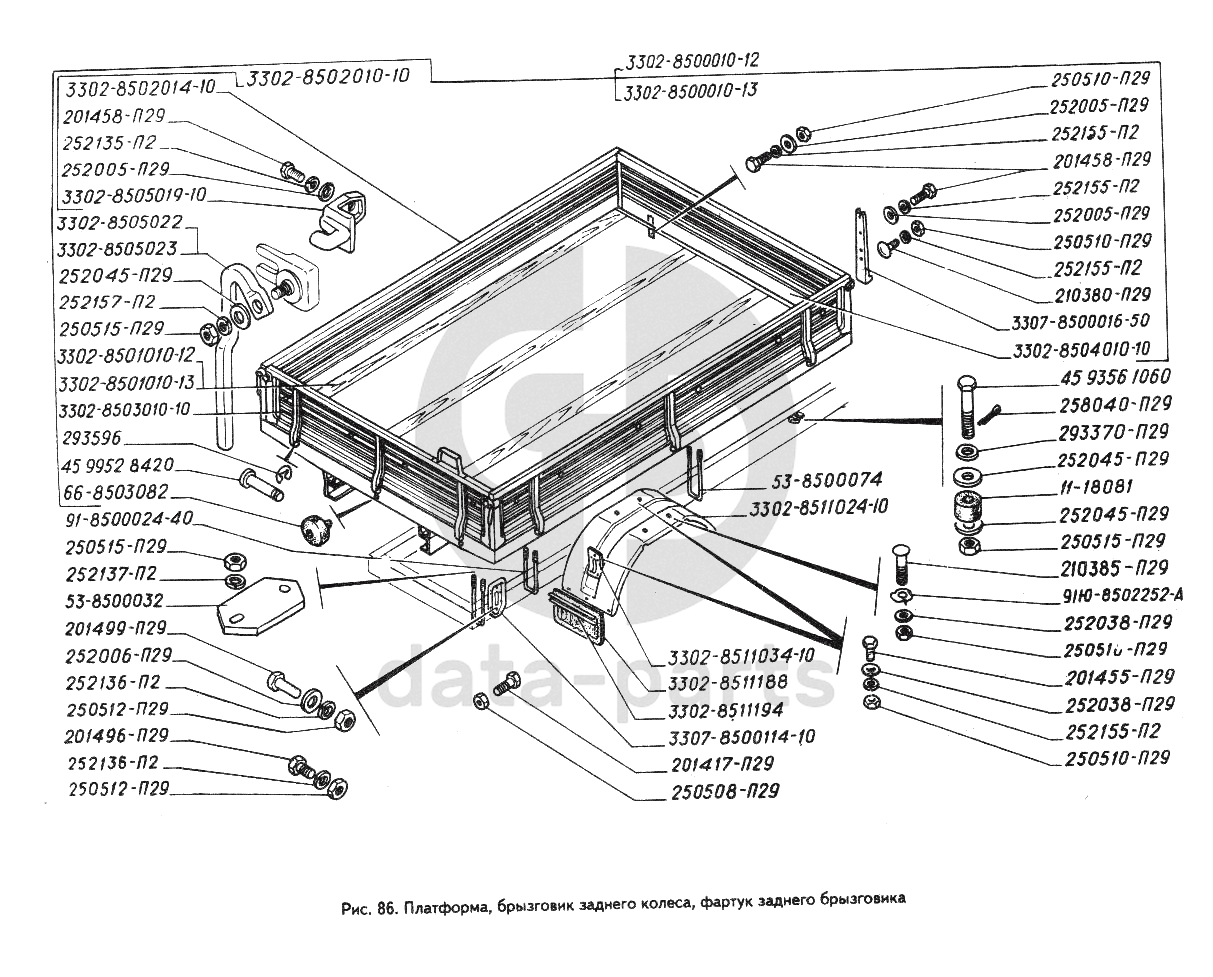 Платформа, брызговик заднего колеса, фартук заднего брызговика ГАЗ-3302 (ГАЗель)